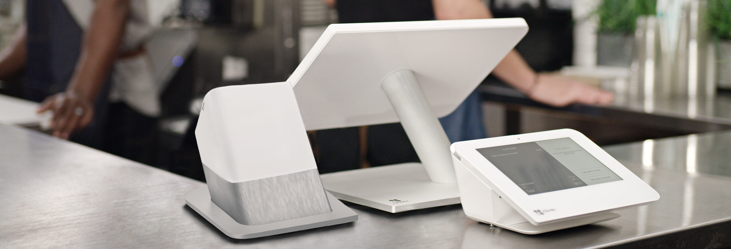 | Cut the counter clutter | One central hub for power and processing. One screen for you, one for your customers. |
